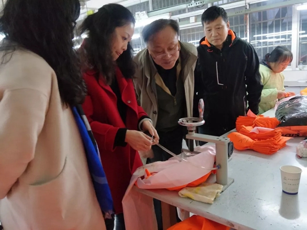 座谈会后,在博迪嘉总经理的陪同下,江苏劳保协会来访领导参观了博迪嘉生产工厂。
