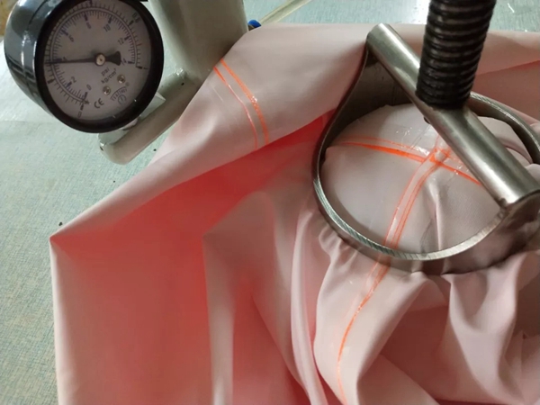 现场,博迪嘉相关负责人随机抽取部分产品质检其防水性、透气性,与协会领导共同见证了博迪嘉过硬的品质。
